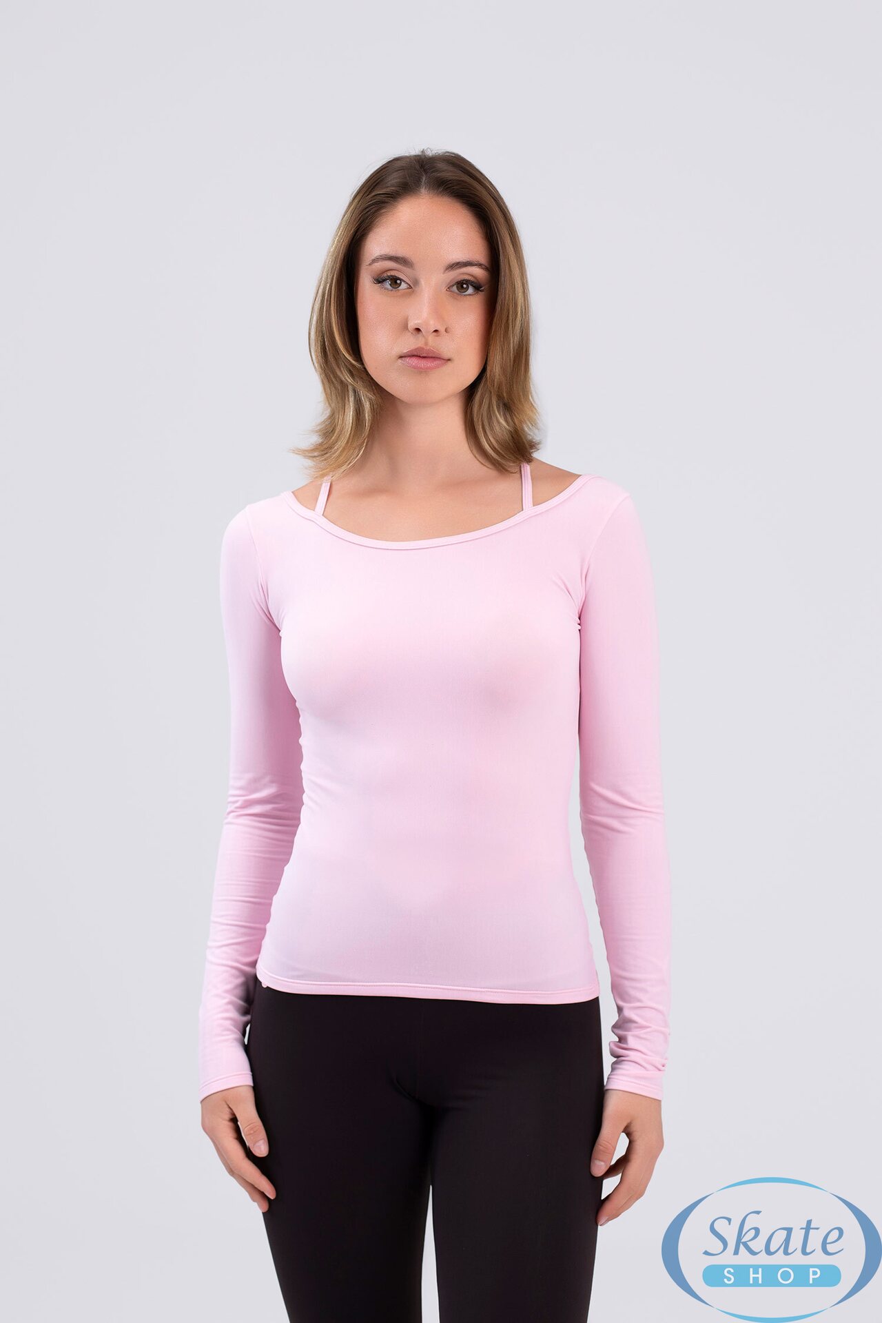 Book an appointment for skate fitting »Long-sleeve top with a boat neckline in soft brushed fabric. Decorative front straps and crossed back straps. Pink logo. Flattering fitted design that enhances the silhouette.